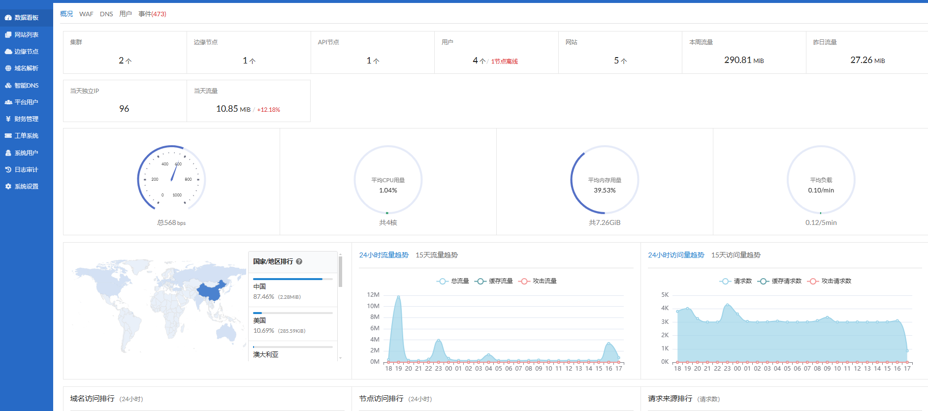 涵盖攻击防御、缓存加速、API接口管理、证书管理、边缘计算、日志与统计分析等全面功能